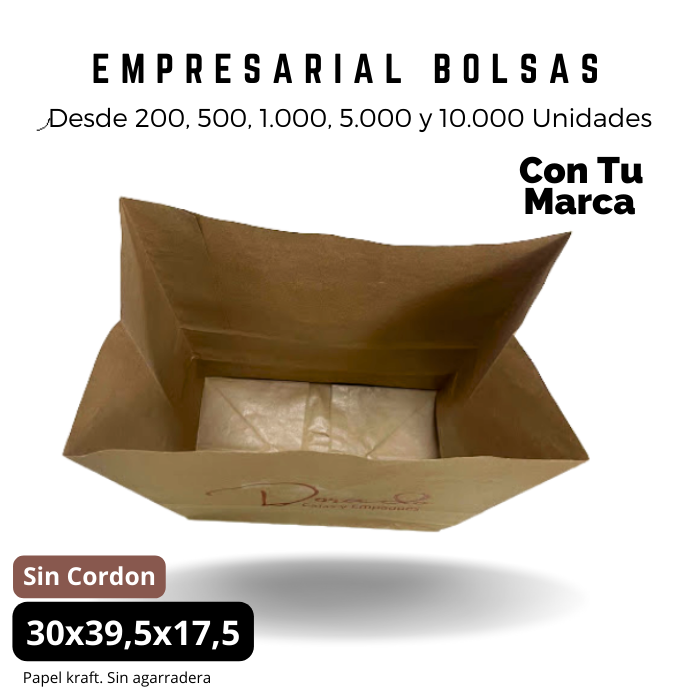 Bolsa Kraft 30x39.5x17.5 Sin Agarradera Ecológica Personalizada Impresa