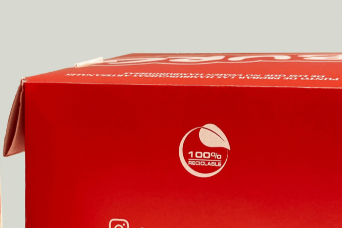 Caja ecológica hecha de bagazo de caña de azucar o kraft, impresa personalizada con tu logo, redes sociales, diseño o imagen.